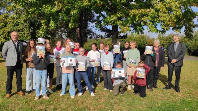 Mercredi 08 octobre, chaque élève a donc reçu ce guide, qui leur permet de découvrir les temps forts de l’histoire et la géographie de leur département, des mains de Marie-Françoise FROUEL et Alain LANGE, Conseillers Départementaux.